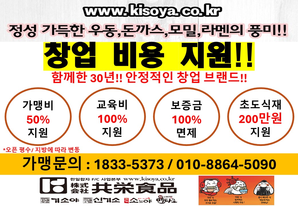 성실과 신용의 기업정신으로 정통 일본 우동 &돈까스 메뉴를 컨셉으로 시대 변화에 따라 일식 우동, 돈가스 전문점으로 특화되었고, 외식산업의 선도주자라는 목표를 가지고 브랜드 기소야, 신기소, 멘타로를 런칭하고 소규모 창업을 위한 소노야 브랜드를 런칭함으로서 일식 우동을 전문적으로 시스템화 할 수 있는 외식업 체인본부로 자리 매김 하였습니다.